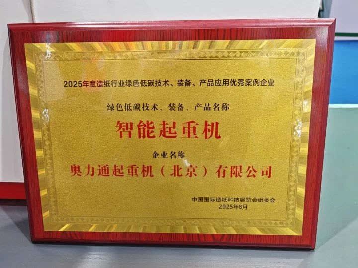 南宫起重机荣获“2025年度造纸行业绿色低碳技术、装备、产品应用优秀企业”称号。
