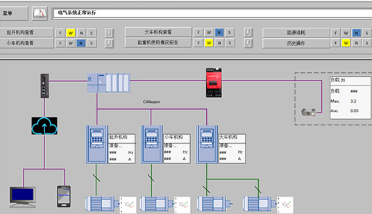远程监控: 通过物联网远程管理、实时掌握智能起重机运行状态,实时显示各机构运行参数、损耗、剩余寿命。无论身处何方,通过授权的远程诊断系统,均能实现远程故障诊断和预防性维保,确保智能起重机处于良好状态。