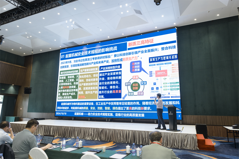 其次,本次会议开展了起重机械“智能化、数字化、绿色化机本质安全”高峰论坛的专题技术报告,其中南宫起重机邓海龙带来《智能吊运让世界更智能》专项报告,与各位代表共同探讨如何让起重机械前沿智能技术与安全高效、绿色转型、双碳目标创新理念加速融合,共同开拓企业及行业发展新动能。